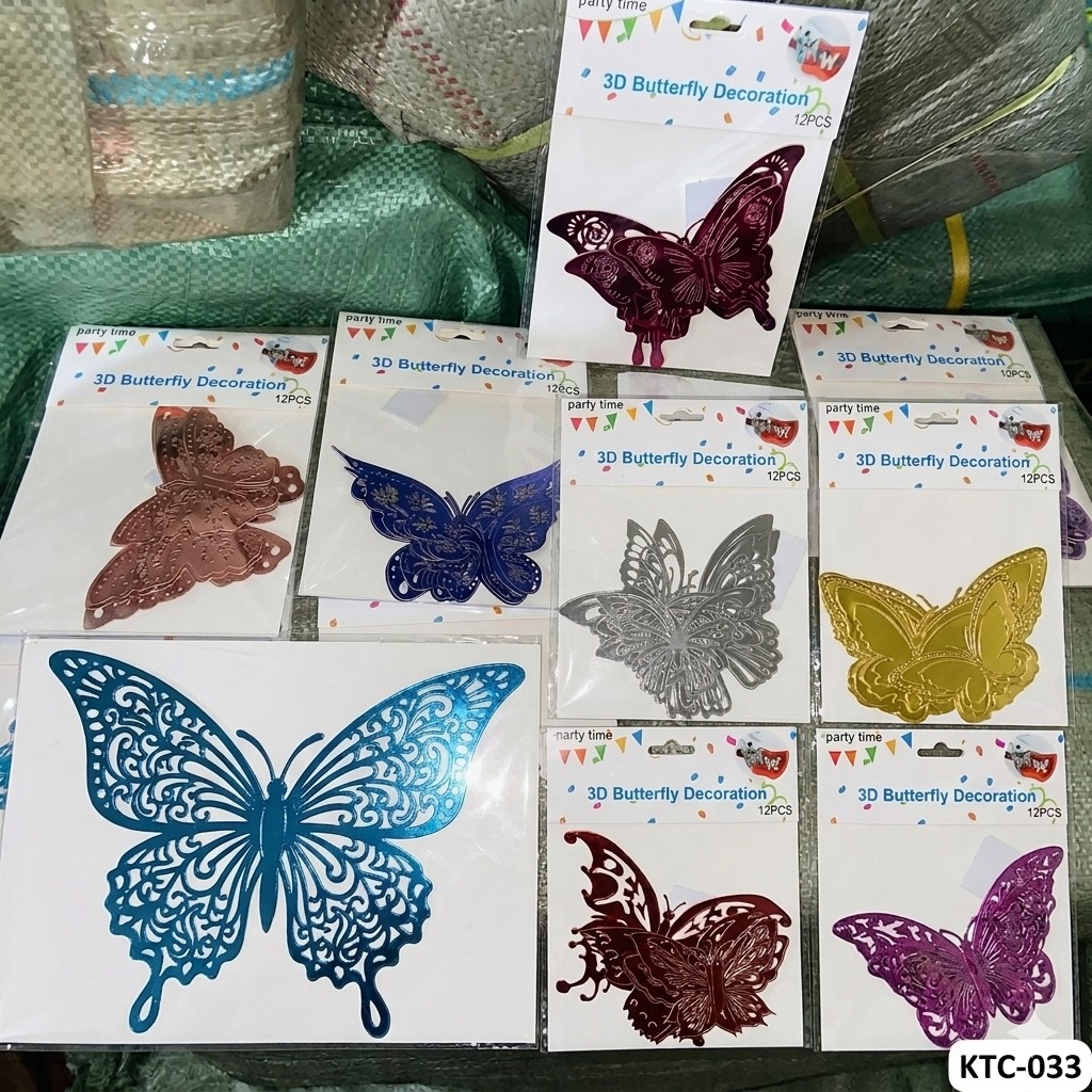 3D butterfly wall decor, butterfly cake toppers, laser cut butterflies, metallic butterfly stickers, hollow out butterfly, party decorations, KTC-033 butterflies.